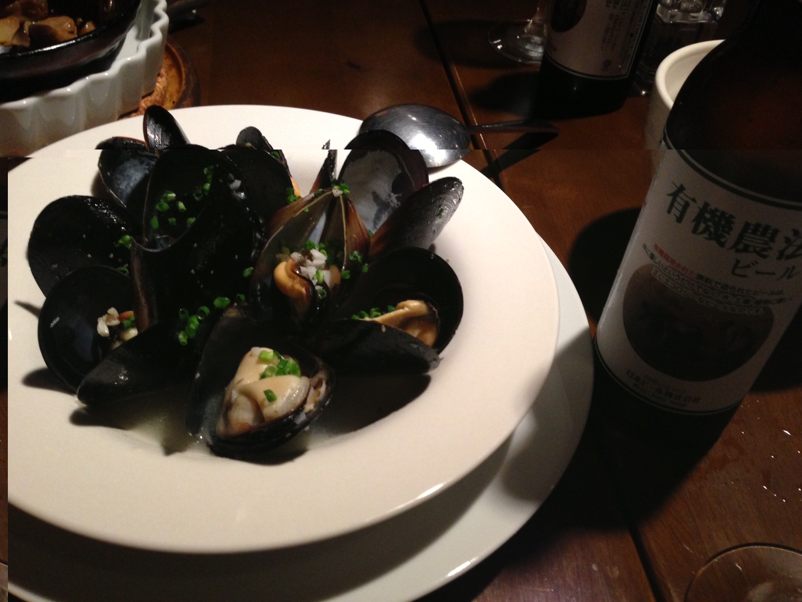 写真は「宮島産 活ムール貝のシャンパン蒸し」です。