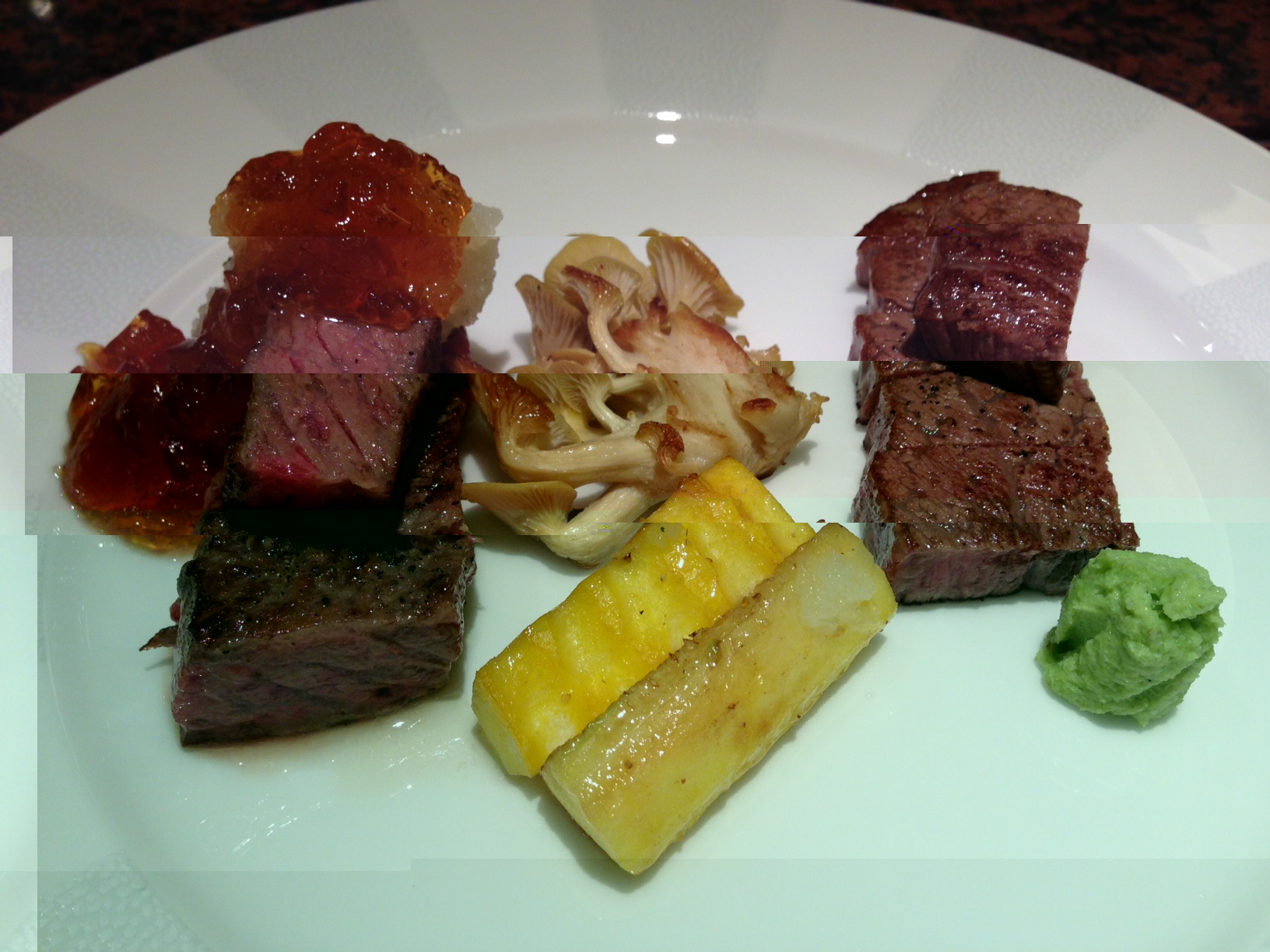 写真は、「静岡そだちサーロインをおろしポン酢で 漢方牛フィレステーキを日本一の山葵で」です。